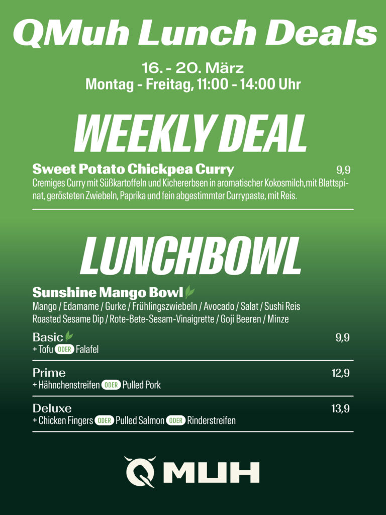 Modernes trifft auf Rustikales, Holz auf Metall und Naturtöne auf knalliges Neonlicht. Bei uns gibt es nicht nur eine Auszeit vom Alltag, sondern auch jede Menge Abwechslung auf dem Teller: Von leckeren Burgern und kreativen Bowls über frische Salate bis hin zu saftigen Steaks ist für jeden Geschmack etwas dabei. Kleine Snacks, Sides und Dips runden unser Angebot ab. Zum süßen Abschluss locken Desserts, Milchshakes und verrückte Freakshakes! Auch fürs Frühstück ist gesorgt: Starte mit unseren Klassikern in den Tag. Durst? Entdecke Craft Beer von Urban Monk, Longdrinks und Cocktails mit Herr Reineke Gin, sowie Kaffee und Espresso von Erdmanns Röstkraft.